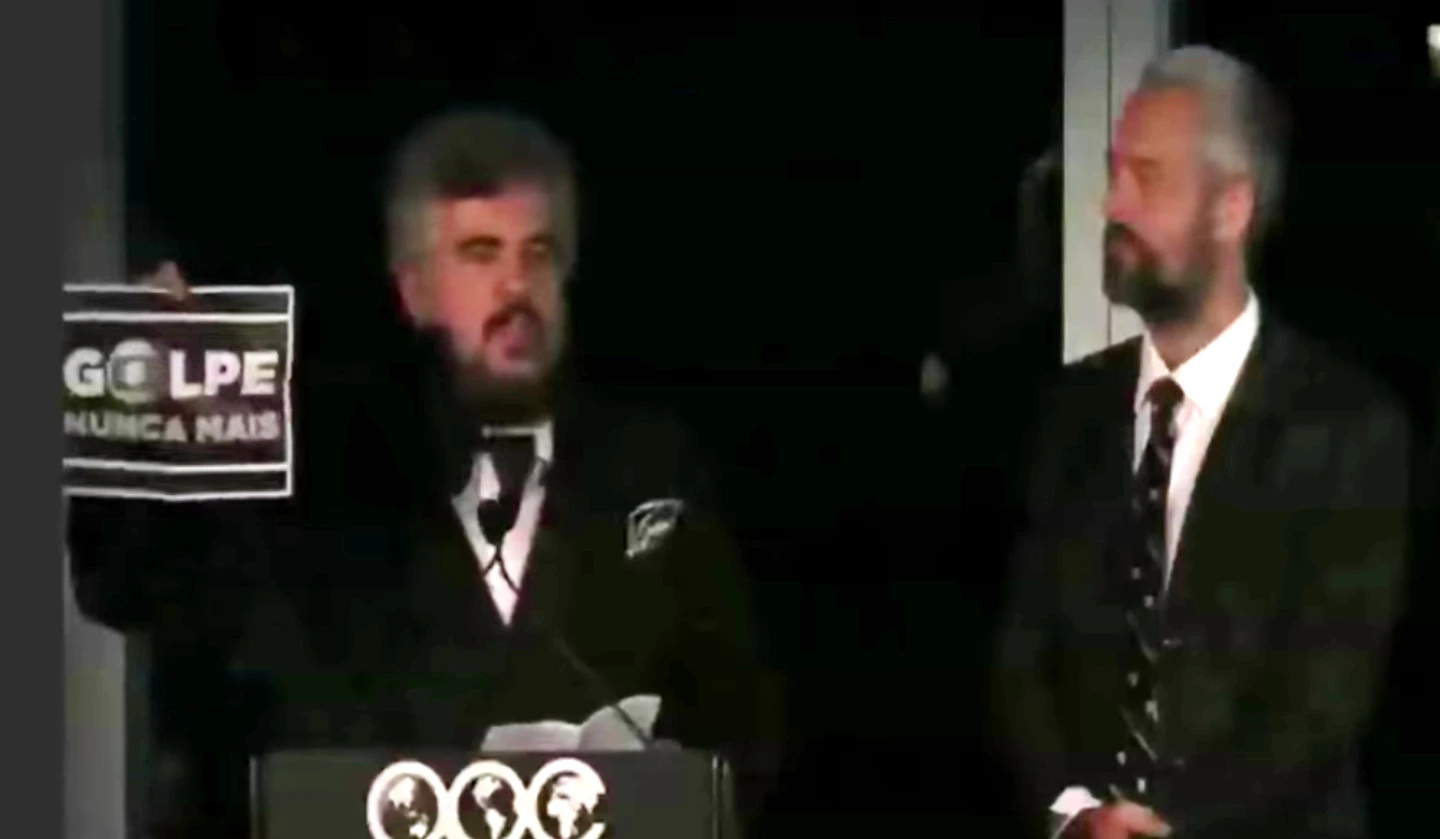 “Eu acho muito importante dizer algumas palavras – eu sou do Brasil”, começou ele, adicionando: “Tenho certeza que todos aqui sabem o que está acontecendo no Brasil neste momento.” Ele continuou: “Eu gostaria de expressar meu apoio à liberdade de expressão e à democracia – o que é exatamente o que não está acontecendo no Brasil agora.” Para finalizar seu argumento, uma simples sentença: “Então, eu sou contra o golpe.”