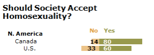 Nada do que foi exposto tem o intuito de negar que há uma postura profundamente preconceituosa contra LGBTs difundida em parte do universo muçulmano: Na maioria dos países, (embora não em todos) o nível de aceitação é menor do que 10%. Isso também é observado em partes do mundo cristão com níveis de pobreza comparáveis, onde pequenas parcelas da população de países majoritariamente cristãos, como Gana, Uganda e Quênia, acreditam que a homossexualidade deva ser aceita pela sociedade. Em outros países que não são predominantemente muçulmanos, como China, Rússia, Nigéria, El Salvador e Israel, a maioria da população também se opõe à aceitação da homossexualidade na sociedade.