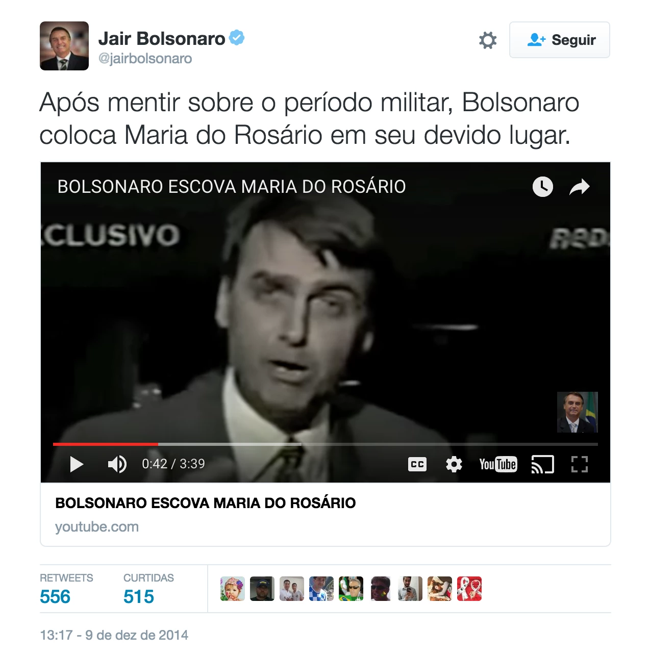 E dedicou seu voto em favor de impeachment “pela memória do Coronel Carlos Alberto Brilhante Ustra, o pavor da Dilma Rousseff”. Brilhante Ustra comandou o infame grupo do DOI-Codi que torturou brutalmente presos políticos durante a ditadura. O uso de tortura sexual e estupro pelo grupo foi bem documentada.