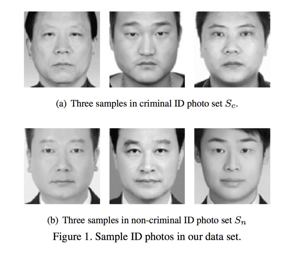 Mas, aparentemente, o mesmo não vale para a era moderna da inteligência artificial: em um artigo chamado”Inferência automatizada de criminalidade através de imagens de rostos”, dois pesquisadores da Universidade Shanghai Jiao Tong disseram que carregaram “imagens faciais de 1.856 pessoas” em computadores e descobriram “atributos estruturais distintos que identificam traços de criminalidade, como a curvatura labial, a distância entre as córneas internas e o ângulo entre a boca e o nariz”. Os pesquisadores concluíram que “as quatro classificações têm resultados razoavelmente consistentes e confirmam a validade da inferência de criminalidade automatizada baseada nas feições, embora o assunto seja historicamente polêmico”.