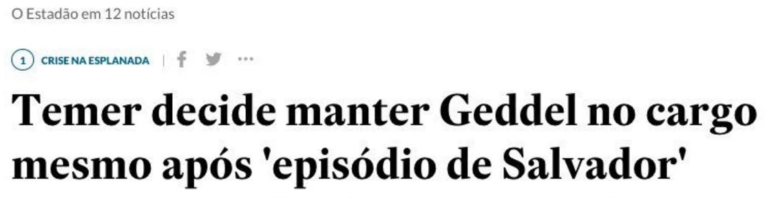 Ainda assim, a Folha foi o veículo que melhor cobriu o escândalo de Geddel. Na quarta-feira, o jornal trouxe desdobramentos do caso ao informar que parentes de Geddel integravam a defesa do edifício barrado pelo Iphan – o que comprova que o padrão-snapchat de duração de notícias só vale para o nosso chanceler.