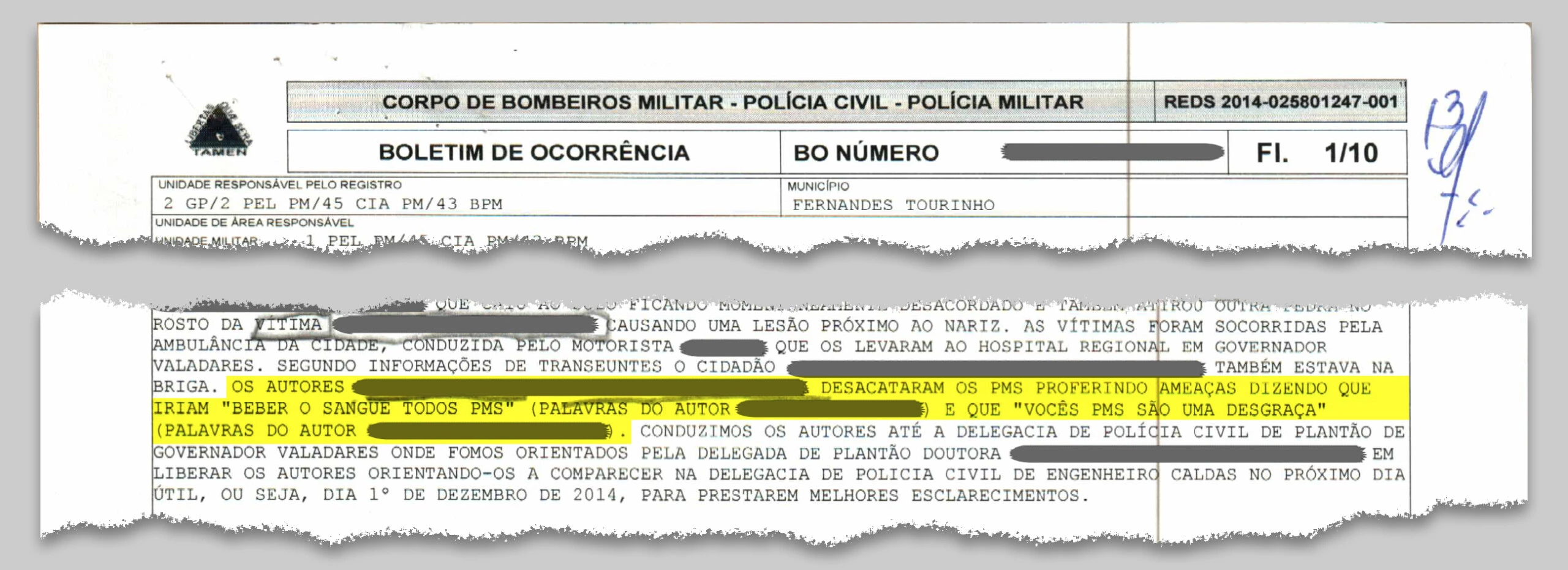 “Esse cara faz tudo o que quer lá”, disse ao oficial, referindo-se ao homem que liderou o ataque: “Ele briga. Ele ameaça as pessoas. Também usa drogas. E nunca o prenderam por nada”. No Boletim de Ocorrência que registra a agressão, posteriormente apensado ao processo de pedido de asilo, o delegado que cuidou do caso da agressão acrescentou, ainda, que os integrantes da gangue cometeram desacato. Os criminosos não apenas desrespeitaram os policiais que os pegaram em flagrante, como fizeram ameaças. Disseram que iriam “pegá-los” e que iriam “beber seu sangue”.