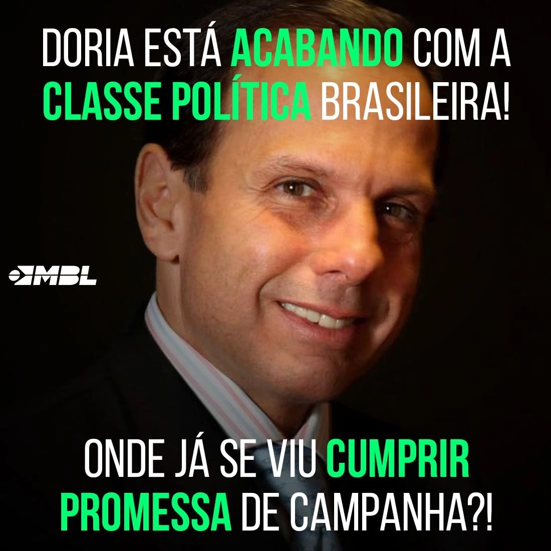 Os jovens do MBL provavelmente não se importam com as promessas que ele não irá cumprir, tais como: congelamento de tarifa de ônibus (aumentou a tarifa), o fim das filas em creches em um ano (secretário já sinalizou que não será possível) e o corte de 15% dos contratos com empresas de ônibus (empresários de ônibus pressionaram e Doria retrocedeu).