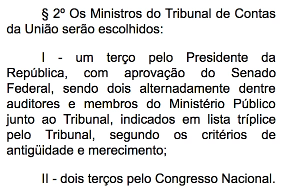 Paralelamente a ele, existem os tribunais de conta dos estados e municípios, que fazem trabalho similar, mas com ação mais restrita. O problema inicial se encontra na escolha dos principais chefes desses tribunais: ela é majoritariamente política. E isso também está definido na Constituição: