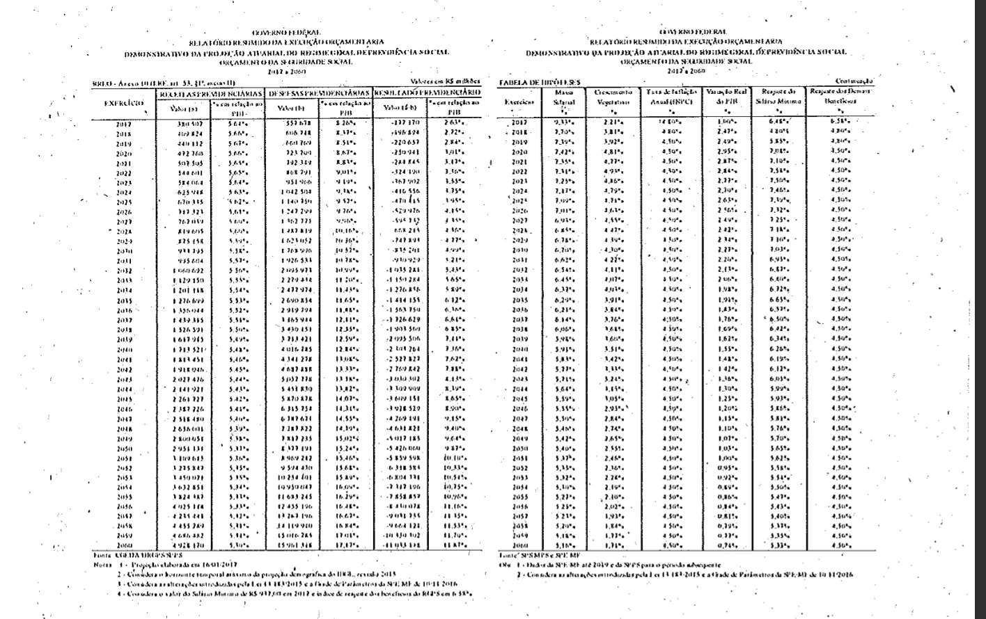 Aviso ministerial entregue à Comissão em março dizia que as despesas com a Previdência custariam 16,7% do PIB até 2060 mas, um mês depois, ministro Meirelles falava em 17,2%.