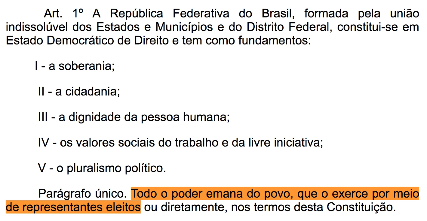 Trecho da Constituição que defende a representatividade popular por meio do voto.