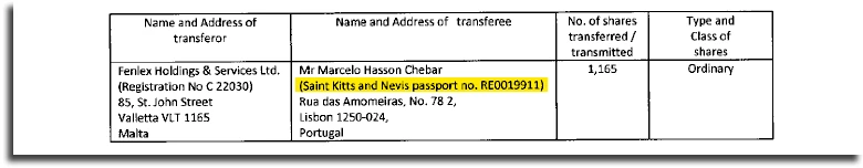 O que se vê na maioria dos casos é que as empresas são criadas em Malta com o auxílio de companhias locais especializadas neste tipo de serviço. No caso dos irmãos Chebar, por exemplo, a responsável foi a Fenlex Corporate Services, que atua em parceria com um escritório de advocacia, o Fenech & Fenech. Marcelo aparece como sócio da Apui Holdings LTD, fundada em setembro de 2016, e Renato, da Regulus Holding LTD, criada em junho do mesmo ano. Além de apresentar números de passaportes de São Cristóvão e Neves, a dupla declarou às autoridades de Malta residir em endereços em Lisboa. Os delatores estão em Portugal respondendo ao processo.
