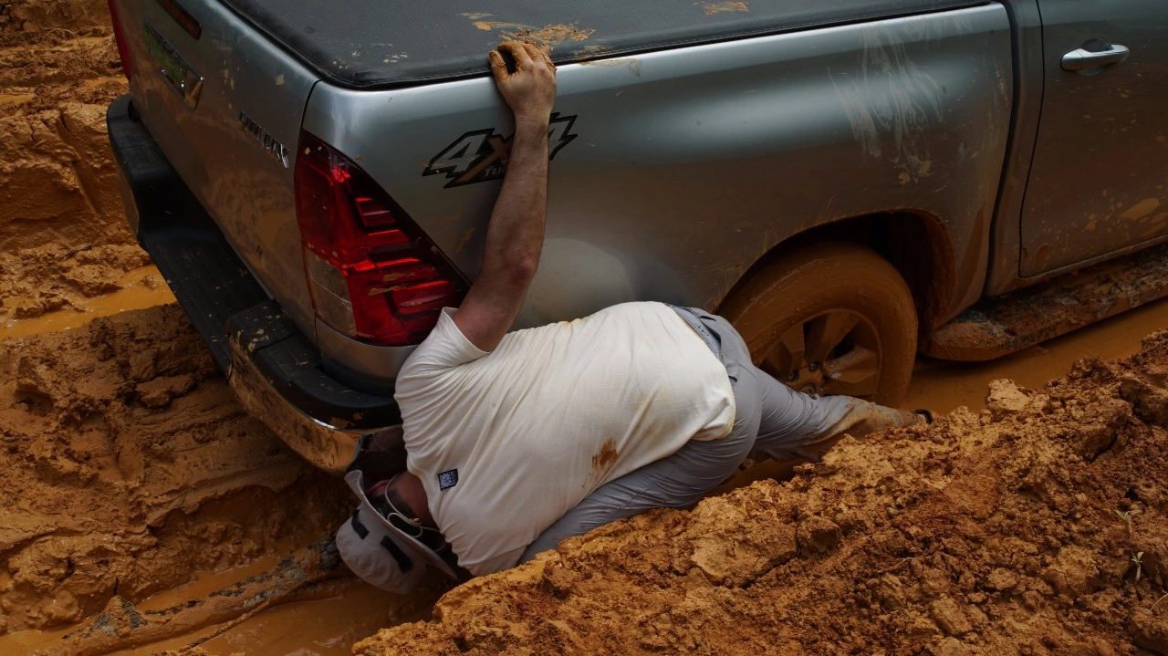 O socorro veio de onde menos esperávamos. Um madeireiro chegou em um trator e, com uma impressionante prática em lamaçais, nos rebocou de lá e avisou, em tom amistoso e sem qualquer constrangimento: “não tem mais ponte, não. A gente derrubou pro Ibama e ICMBio não perturbarem. Sem ponte, eles só chegam lá se for de helicóptero”.