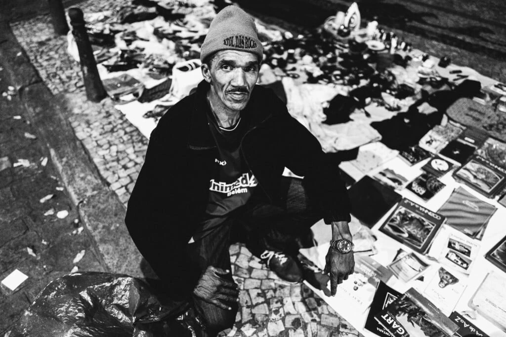 Conhecido como “Família”, é garimpeiro do asfalto e tem uma banquinha no shopping chão, de onde tira seu sustento.