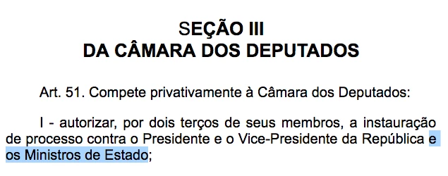 Já a Constituição determina que cabe à Câmara dos Deputados autorizar o prosseguimento de um processo contra o presidente ou contra ministros. Seguindo esta lógica processual, a Comissão de Constituição e Justiça da Câmara decidiu matar (ou melhor, salvar) três coelhos numa cajadada só e votar o processo considerando a organização criminosa como um bloco único, sem “fatiar” a denúncia.