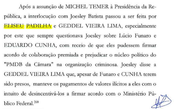 De acordo com o Ministério Público, Padilha também passou a ser o canal de contato de Michel Temer com o empresário Joesley Batista após a efetivação do peemedebista.
