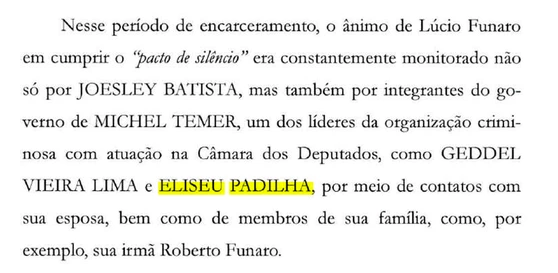 Padilha também é citado na denúncia como um dos responsáveis por monitorar o silêncio do doleiro Lúcio Funaro, que veio a assinar acordo de delação premiada em agosto.