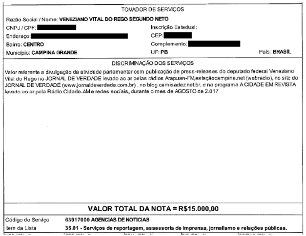 A principal empresa contratada por ele, a Florêncio Publicidade, Eventos e Serviços LTDA, da Paraíba, é responsável pela publicação de press releases feitos pela assessoria do deputado em uma série de veículos de comunicação, entre eles o site e o programa Jornal de Verdade, que se autointitula o mais antigo jornal de rádio de Campina Grande.