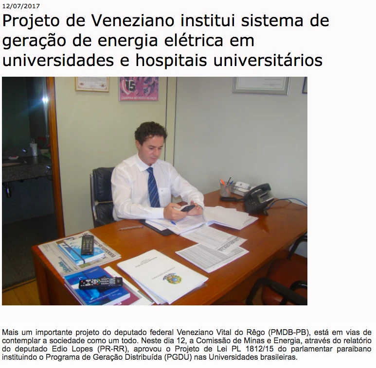 Em julho do ano passado, uma matéria exaltou um projeto de Veneziano que beneficiaria “a sociedade como um todo”:
