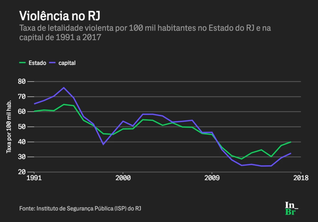 Eram registradas altas taxas de homicídios (dolosos) tanto na cidade quanto no Estado do Rio. A corrupção policial era galopante, tráfico de armas e drogas estavam a todo vapor, a sensação de medo era generalizada.