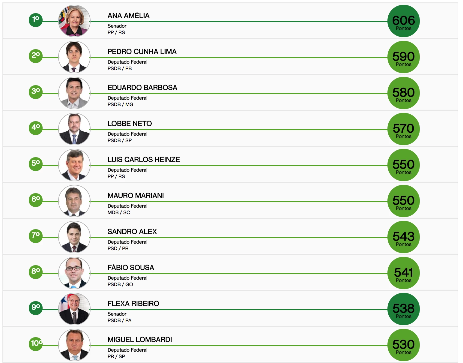 No Facebook, Ana Amélia se disse honrada em liderar o ranking, que, segundo ela é uma “importante ferramenta apartidária que avalia a atuação dos 594 parlamentares.”