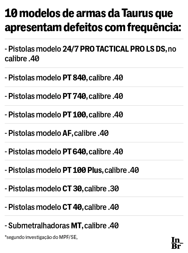 O caso ainda corre na justiça, mas a empresa já suspendeu a produção de nove modelos de armas nos EUA, dentre eles alguns que continuam a ser usadas por policiais brasileiros. Procurada, a Taurus não respondeu quais dos modelos suspensos nos EUA ainda são fabricados no Brasil e em que quantidade. Mas policiais militares do Rio Grande do Norte, Brasília, Bahia, Rio de Janeiro e Minas Gerais me disseram que tem acesso – institucional ou particularmente – ao menos aos modelos de pistolas PT 24/7 e PT-640.