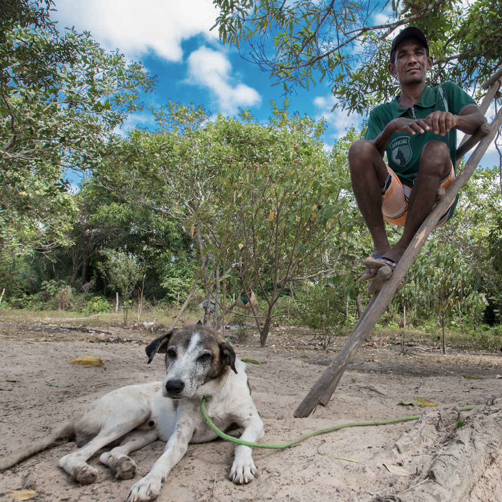 A força e destreza que sobraram nas mãos não são mais suficientes para Aldeli realizar tarefas antes rotineiras, como pescar, capinar, plantar e colher. “Às vezes passo necessidade por não poder ir pescar, por não poder caçar um bichinho pra comer”, conta. Quem faz o serviço na roça é sua companheira, Joseane Maracanã Ribeiro Guajajara, 39 anos. É ela também quem o ajuda a se levantar da rede suspendendo-o pelo braço. Ele não tem mais força para se erguer apoiando-se nas mãos.