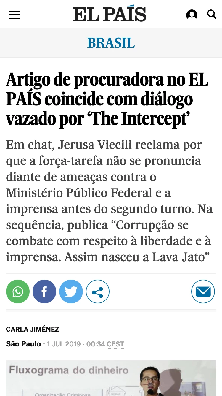 No dia 30, o El País publicou um artigo sob o título: “Artigo de procuradora no EL PAÍS coincide com diálogo vazado por ‘The Intercept’,” e explicou: “o conteúdo da nova reportagem revela trechos de uma conversa privada dos procuradores que coincidem com a linha de raciocínio de um artigo publicado pela procuradora Jerusa Viecili no EL PAÍS Brasil no dia 28 de outubro.”