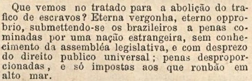 Cunha Mattos ainda disse: “Senhores, é moda do dia falar contra o tráfico de escravos: o abandonemos, mas que seja abandonado com honra, com dignidade, e sem intervenção da força armada inglesa”.