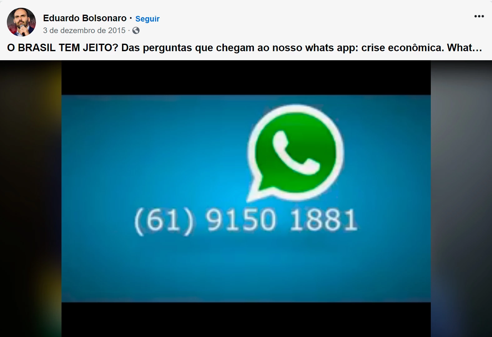 Já Flávio Bolsonaro divulgou seu telefone em um tuíte, onde reclamou que o WhatsApp havia banido sua conta devido a atividades suspeitas: