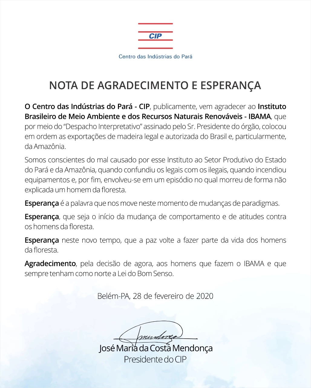 A nota dos industriais paraenses fala em “mal” causado pelo Ibama a madeireiros e em “esperança” com a decisão assinada por Eduardo Bim – que é criticada por servidores de carreira do órgão.