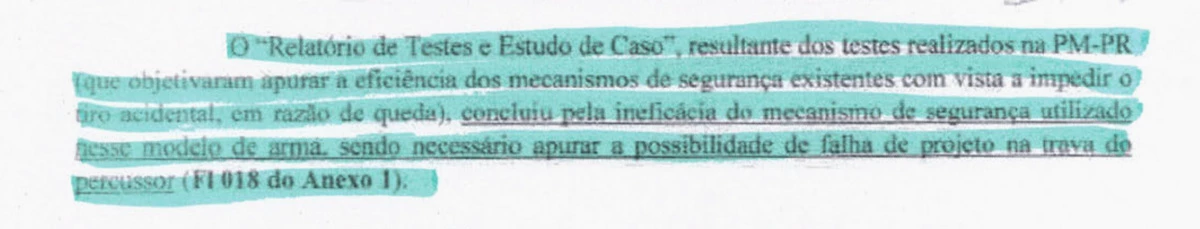 Com base na ação do MP da Paraíba, os militares também examinaram armas das PMs de Goiás e do Paraná. Casos de defeitos em armas da empresa compradas pelas policiais militares do Rio e de São Paulo também foram citados no relatório.