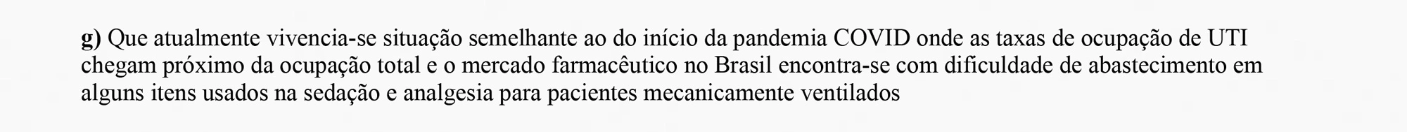 Pedro Carvalho Diniz, médico da UTI de covid no hospital da Universidade Federal do Vale do São Francisco em Petrolina, Pernambuco, afirma que intubar pacientes sem os medicamentos essenciais deixa de ser um tratamento e passa a ser uma tortura, pois eles sentirão dor e muito desconforto durante todo o processo. “Pessoas com a covid-19 dependem de pressões altas no ventilador. E quanto maior é a pressão, maior tem que ser a dosagem dos medicamentos”, explicou. “Se a sedação faltar, o paciente acorda ansioso, agitado e com dor. Ele também vai ter reflexos de vômito por causa do tubo na garganta. É impensável faltar neurobloqueador muscular e sedativo em UTI de covid”.