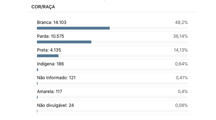 Gráfico do Tribunal Superior Eleitoral exibe um comparativo da autodeclaração de cor e raça dos candidatos em 2022.