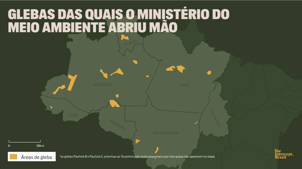 Mas as atas dos encontros, obtidas pelo Intercept via Lei de Acesso à Informação, mostram um esforço do ministério para destinar o maior pedaço de terra possível para propriedades privadas e praticamente nada para a proteção da floresta. Mais de mil glebas ou pedaços de glebas foram analisados entre abril de 2020 e julho de 2022, e a pasta não se mexeu para proteger nenhuma.