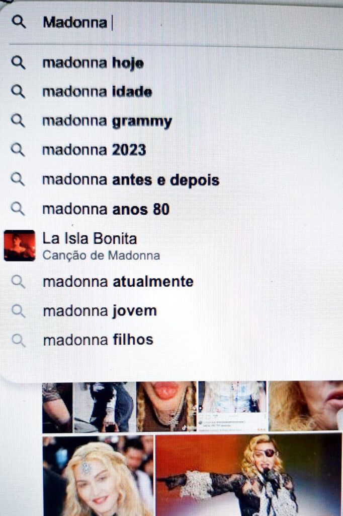 As big techs, é claro, tiram suas casquinhas desse ódio contra as mulheres mais velhas: quando coloquei o nome de Madonna e de Xuxa no Google, foi isso que apareceu: