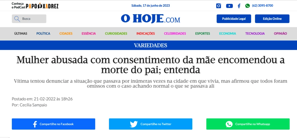Noticiar que uma mulher estuprada desde os 9 anos pelo pai, espancada diversas vezes, grávida 12 vezes do seu próprio genitor sem que o seu sofrimento seja o destaque é cretino demais. Anunciar que Severina “encomendou a morte do pai” em um título é jogá-la, de novo, em um julgamento social no qual ela obviamente sai perdendo.