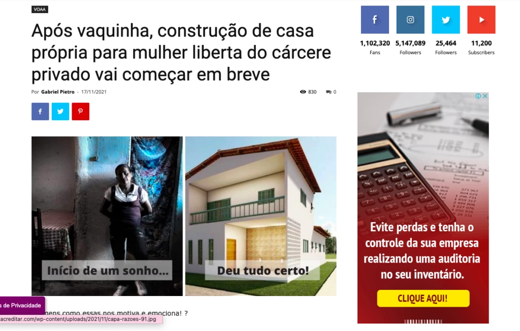 “Histórias como essas nos motiva[m] e nos emociona[m]?”, pergunta a legenda que induz a um erro: crer que Severina ergueu a casa do projeto original.