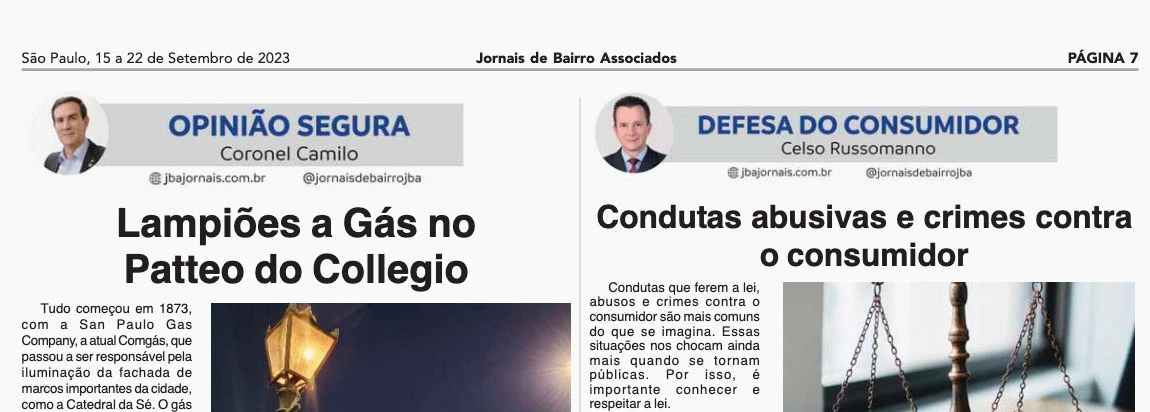 Apesar da diversidade no nome dos jornais, o conteúdo é exatamente o mesmo, variando apenas uma pequena reportagem personalizada da parte superior da capa – essa sim, ligada à região onde a publicação é distribuída. Entre os colunistas publicados nos jornais da JBA, estão o deputado federal Celso Russomano, do Republicanos, e o deputado estadual paulista Coronel Camilo, ex-comandante geral da Polícia Militar de São Paulo, do PSD. As siglas dos dois políticos integram a base aliada do prefeito Ricardo Nunes.