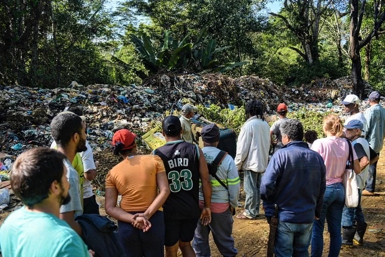 Seu Louro limpando área com lixo despejado pela prefeitura. Foto: Alass Deriva. Nas últimas três décadas, dentro do território do assentamento, este rio teve 90% da sua mata ciliar recuperada. Além disso, a 200 metros do lixão, fica uma estação onde a Empresa Baiana de Águas e Saneamento coleta água para abastecer as torneiras da população de Arataca. A empresa se pronunciou sobre o caso em 2023, alegando que a água é própria para consumo, mas os assentados querem uma análise autônoma da água.