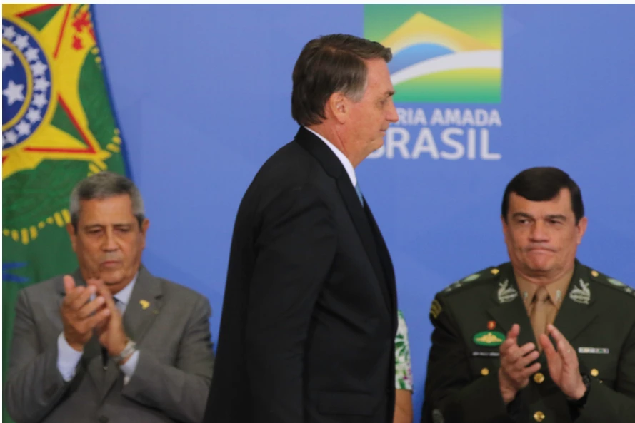 Braga Neto, Bolsonaro e Paulo Sérgio Nogueira, todos indiciados por crime de tentativa de abolição do estado de direito, vulgo ‘golpismo’. Fonte:Fabio Rodrigues Pozzebom/Agência Brasil