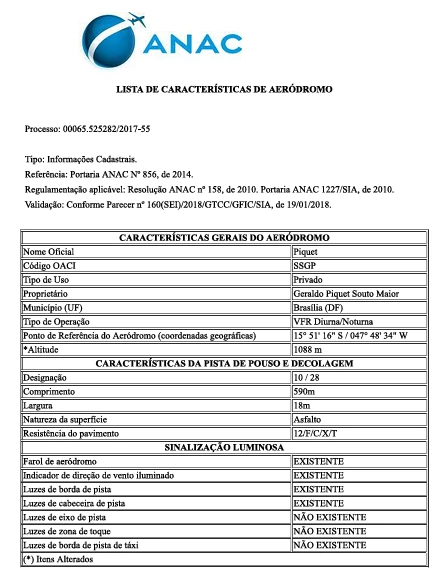 A pista de pouso e decolagem em questão, chamada simplesmente de Piquet, tem registro vigente na Agência Nacional de Aviação Civil, a Anac, como aeródromo privado. Ele fica localizado na borda do condomínio de Bolsonaro, imediatamente atrás da antiga Hípica Lago Sul, terreno que pertenceu à família Piquet até 2016.